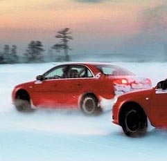 Следующий вид испытаний — оценка влияния шин на управляемость. Здесь наблюдается такая тенденция: ведущие шинные компании уже специально адаптируют шины к работе электронных систем стабилизации. Но, во-первых, это пока относится не ко всем моделям, а во-вторых, далеко не все автомобили оборудованы подобными системами. Поэтому заезды на время по ледяной и заснеженной трассам выполнялись как с включенной, так и с выключенной системой стабилизации. А полученные данные усреднялись. Любопытно, что если в ходе «свободных» заездов результаты некоторых моделей заметно отличались, то с включенной ESP отличие сходило на нет. Отсюда вывод: зимние шины для автомобилей, лишенных систем стабилизации, нужно подбирать более тщательно.